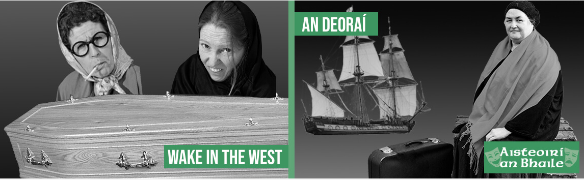 Tá Aisteoirí an Bhaile, grúpa bríomhar aisteoireachta as Maigh Cuilinn i gConamara, ar ais ar an stáitse le dhá léiriú nua, An Deoraí agus Wake in the West. Scrúdaíonn An Deoraí téamaí imirce agus caillteanais trí lionsa an American Wake i dtús an 20ú céad. Scríobh an drámadóir as Maigh Cuilinn, Lorcan Ó Tuathail an dráma i dtús na 1900idí mar agóid in aghaidh na himirce agus é bunaithe ar an ócáid a bhíodh ag daoine agus iad ag fágáil slán sula dtugaidís siad aghaidh ar Mheiriceá. Is minic nach bhfillfeadh siad ar an mbaile arís ina dhiaidh sin.