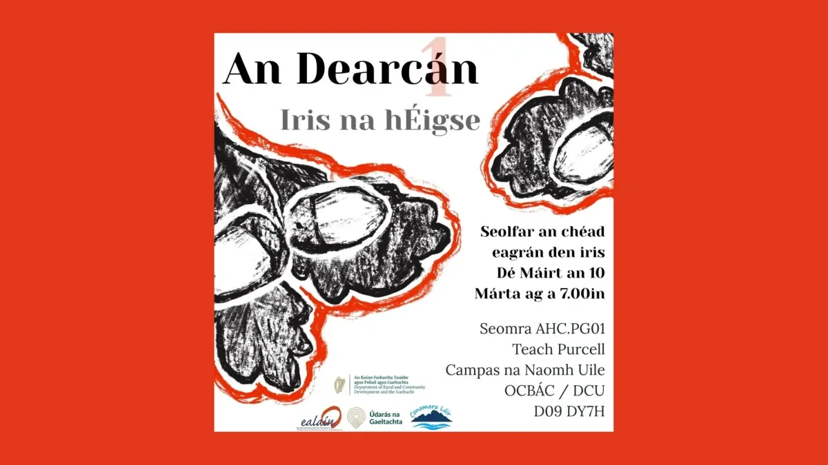 Seolfar An Dearcán: Iris na hÉigse, iris nua filíochta i dTeach Purcell ar Champas na Naomh Uile, Ollscoil Chathair Bhaile Átha Cliath (OCBÁC) ar an Mháirt an 10 Márta ag 7pm. Is í an file Laoighseach Ní Choistealbha, atá ina Scríbhneoir Cónaithe Gaeilge ag OCBÁC, atá ag óstáil na hócáide. Tá dánta san iris ó fhilí bunaithe agus filí nua, Louis de Paor, Eoin P. Ó Murchú, Áine Ní Ghlinn, Orlaith Ní Icí, agus Simon Ó Faoláin ina measc. Beidh an iris ar díol ag an ócáid ar €4.00 / £3.50.