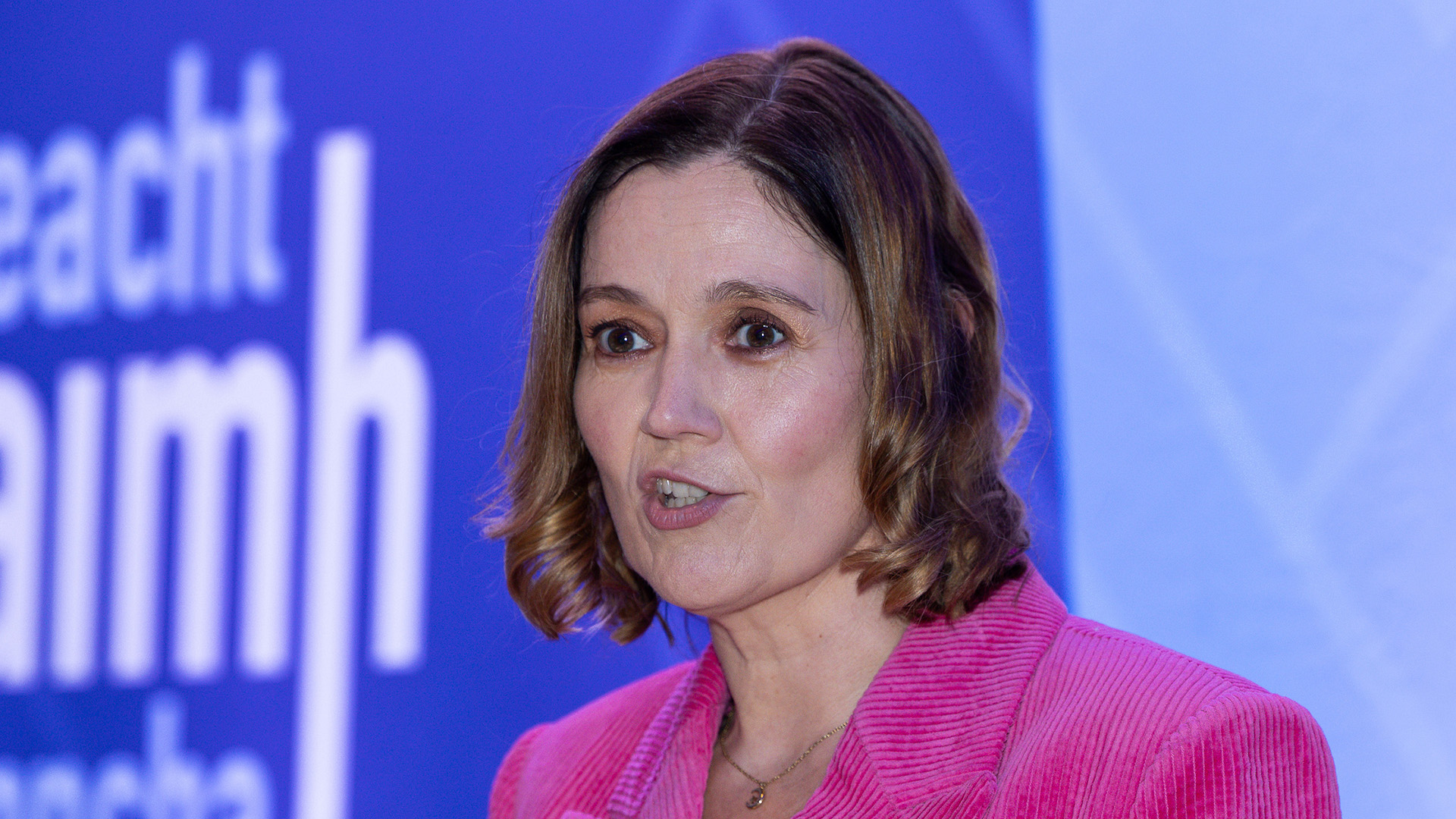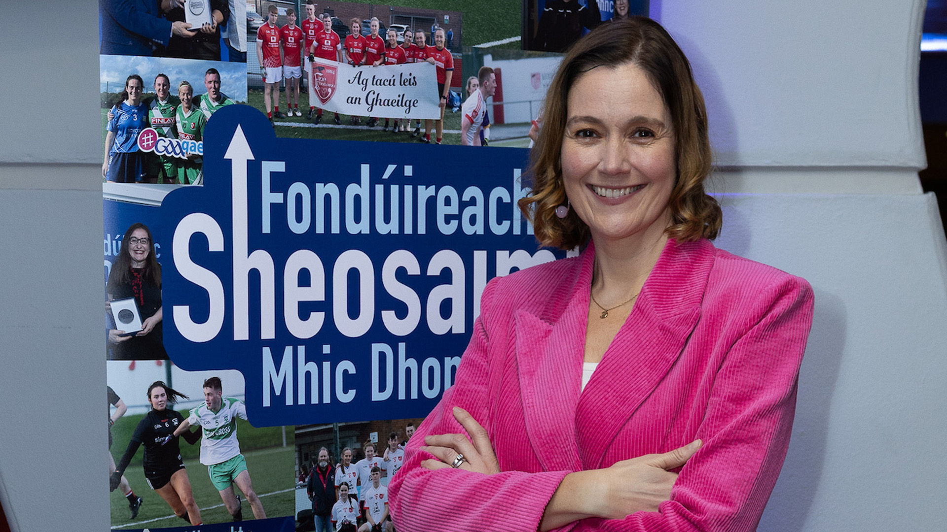 Áine Uí Choinn, Cathaoirleach Choiste náisiúnta Gaeilge CLG, ag caint ag bronnadh Fhondúireacht Sheosaimh Mhic Dhonncha i bPáirc an Chrócaigh