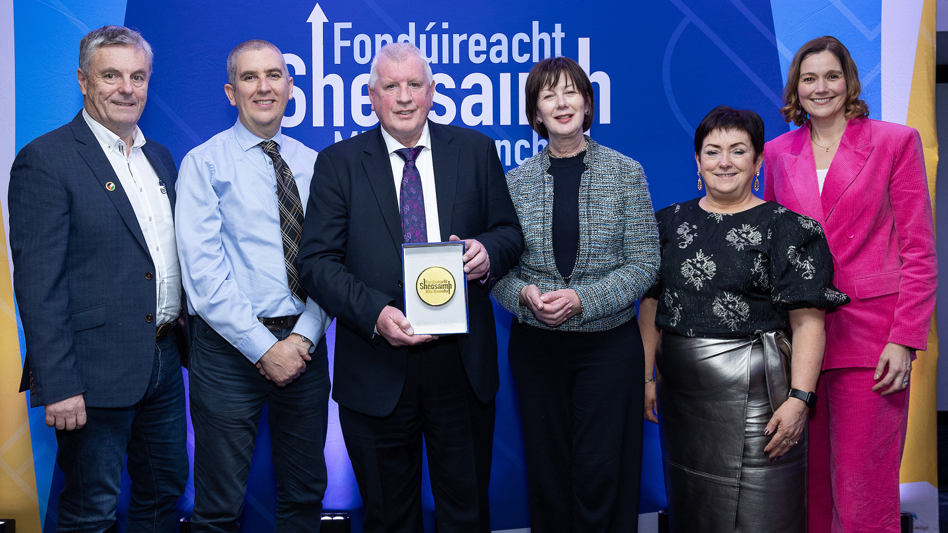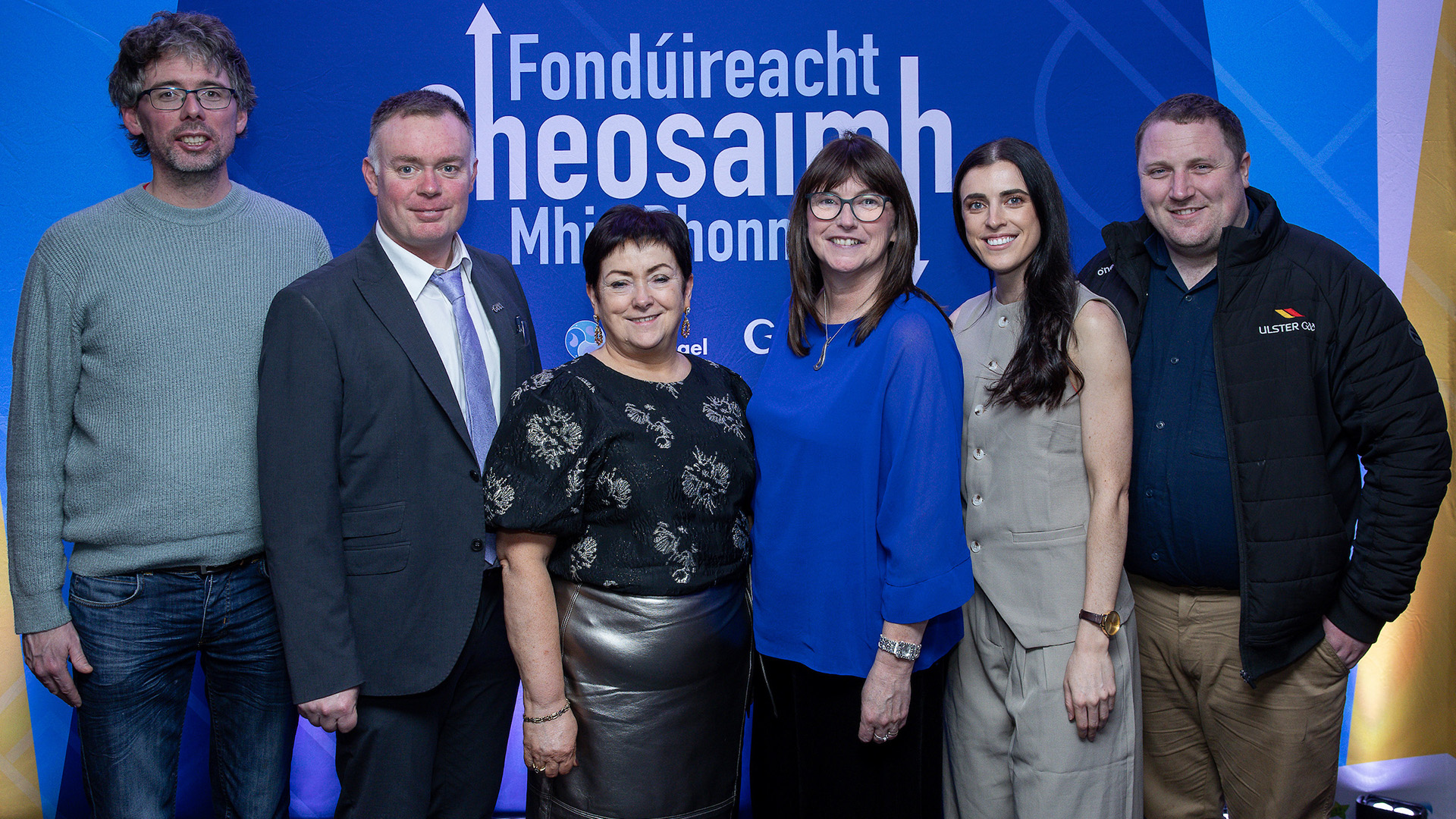 Baill de Choiste Náisiúnta Gaeilge CLG ag bronnadh Fhondúireacht Sheosaimh Mhic Dhonncha. Shane Ó Broin, Jamie Ó Tuama, Áine Uí Choinn, Aedín Ní Bhriain, Niamh Nic Ghiolla Dhuibh agus Ciarán Mag Uidhir