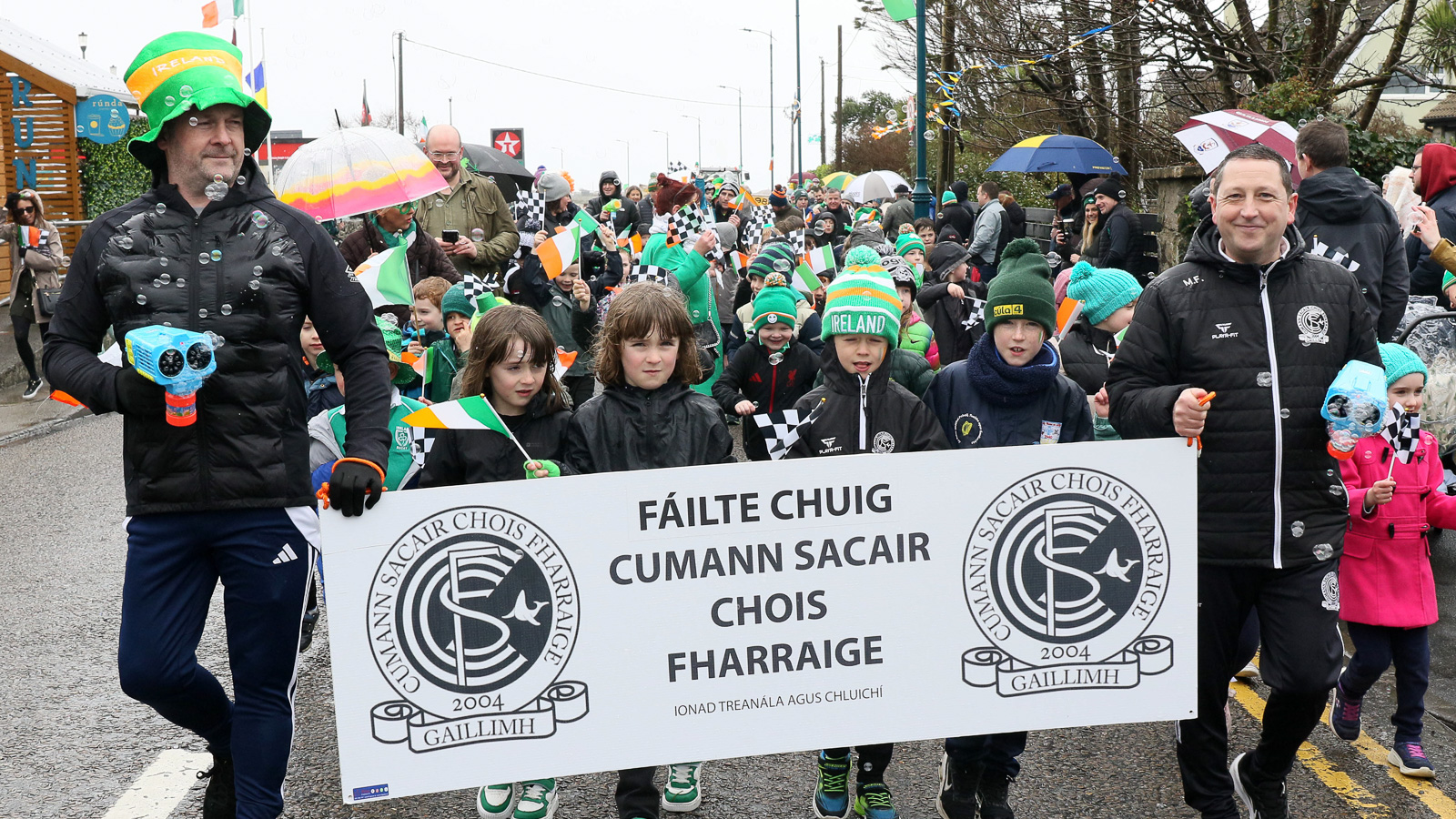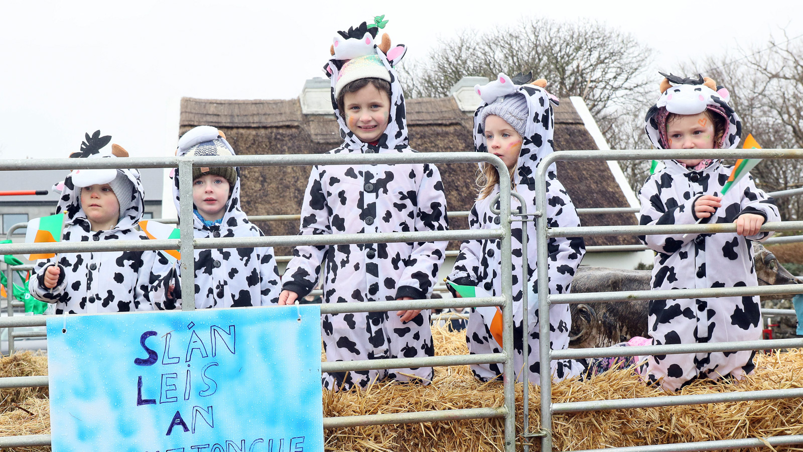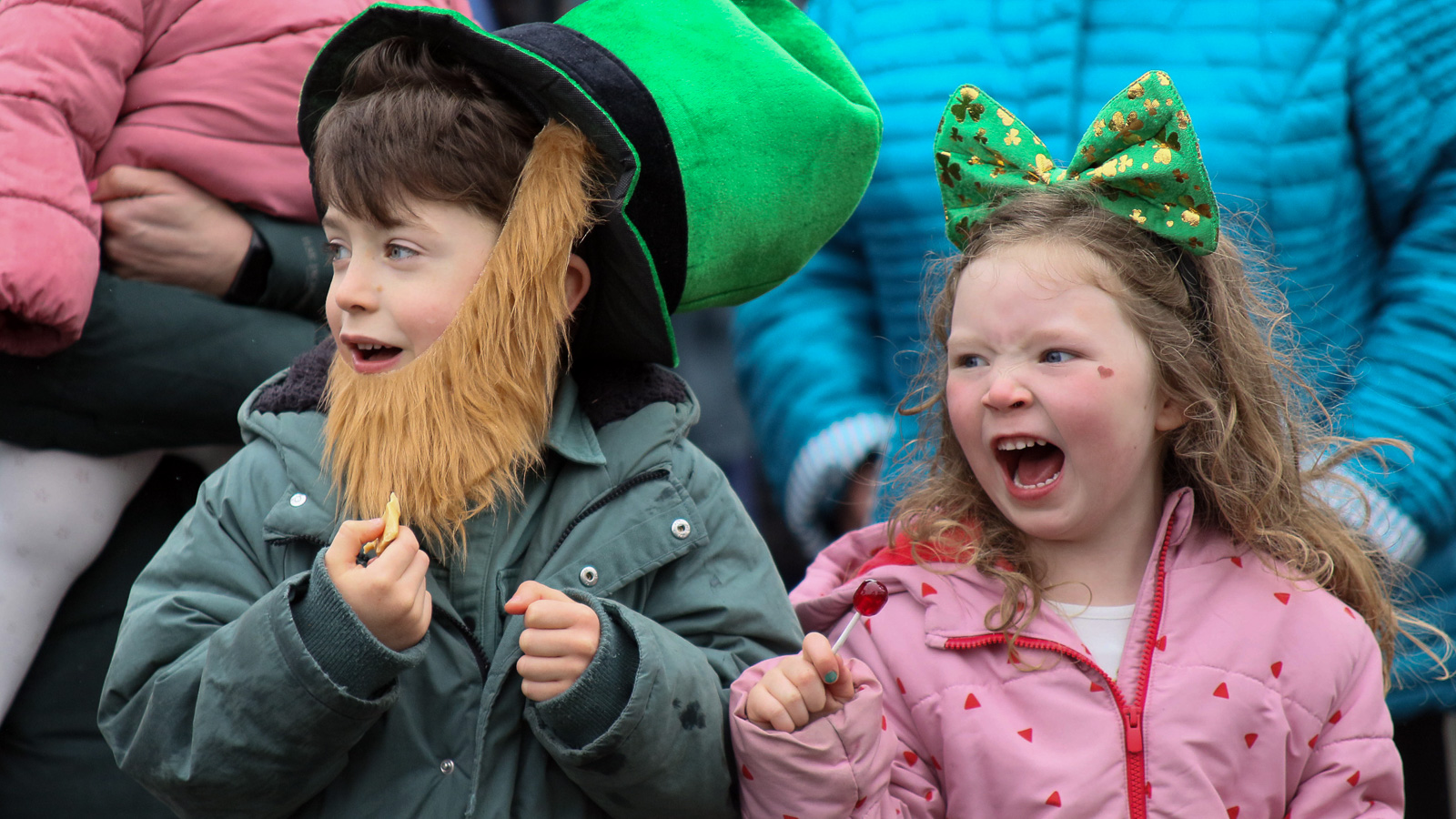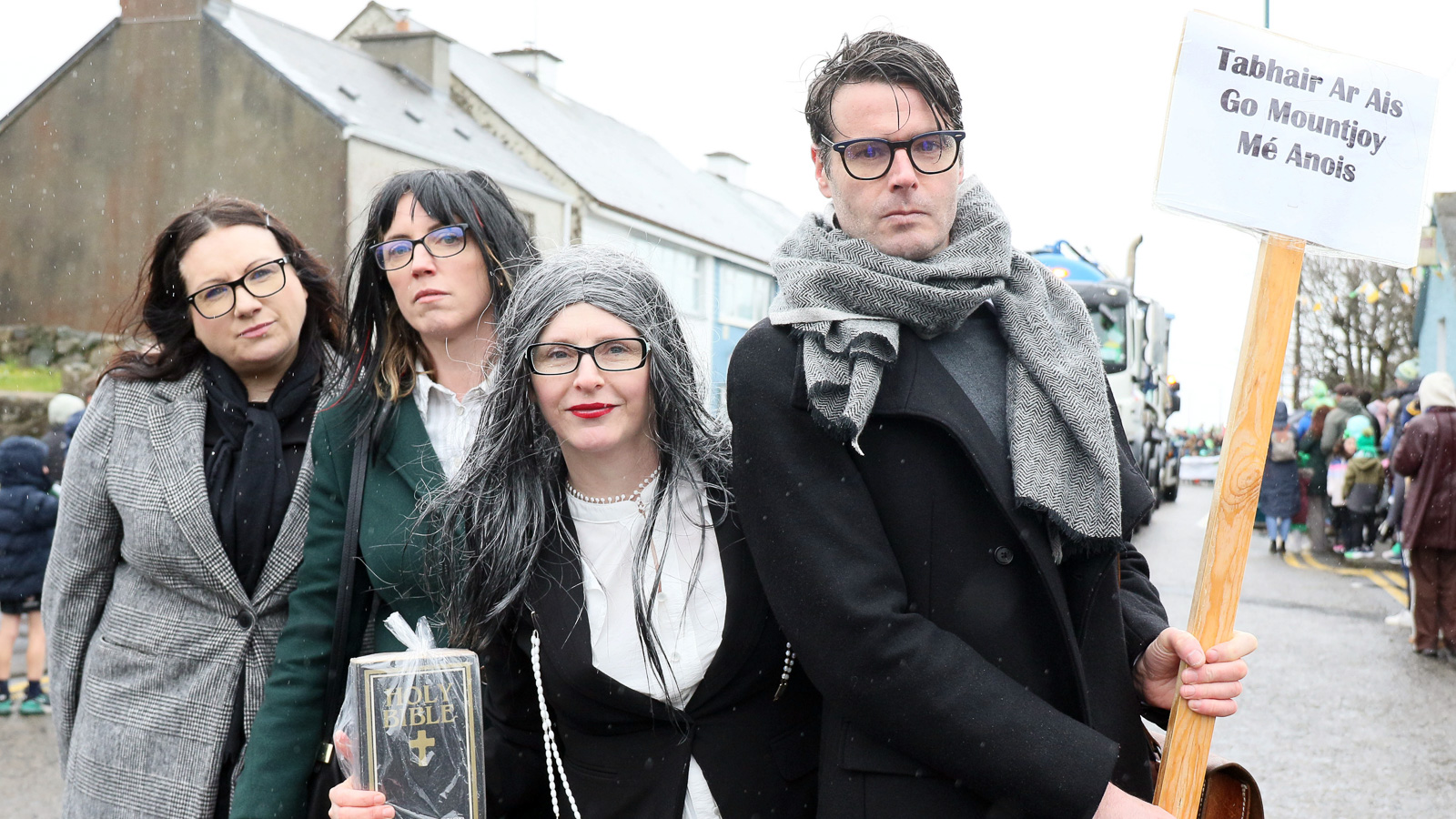 Fág freagra ar 'GAILEARAÍ: Kneecap agus Naomh Bríd agus Naomh Padraig ag paráid Lá Fhéile Padraig ar an Spidéal'
