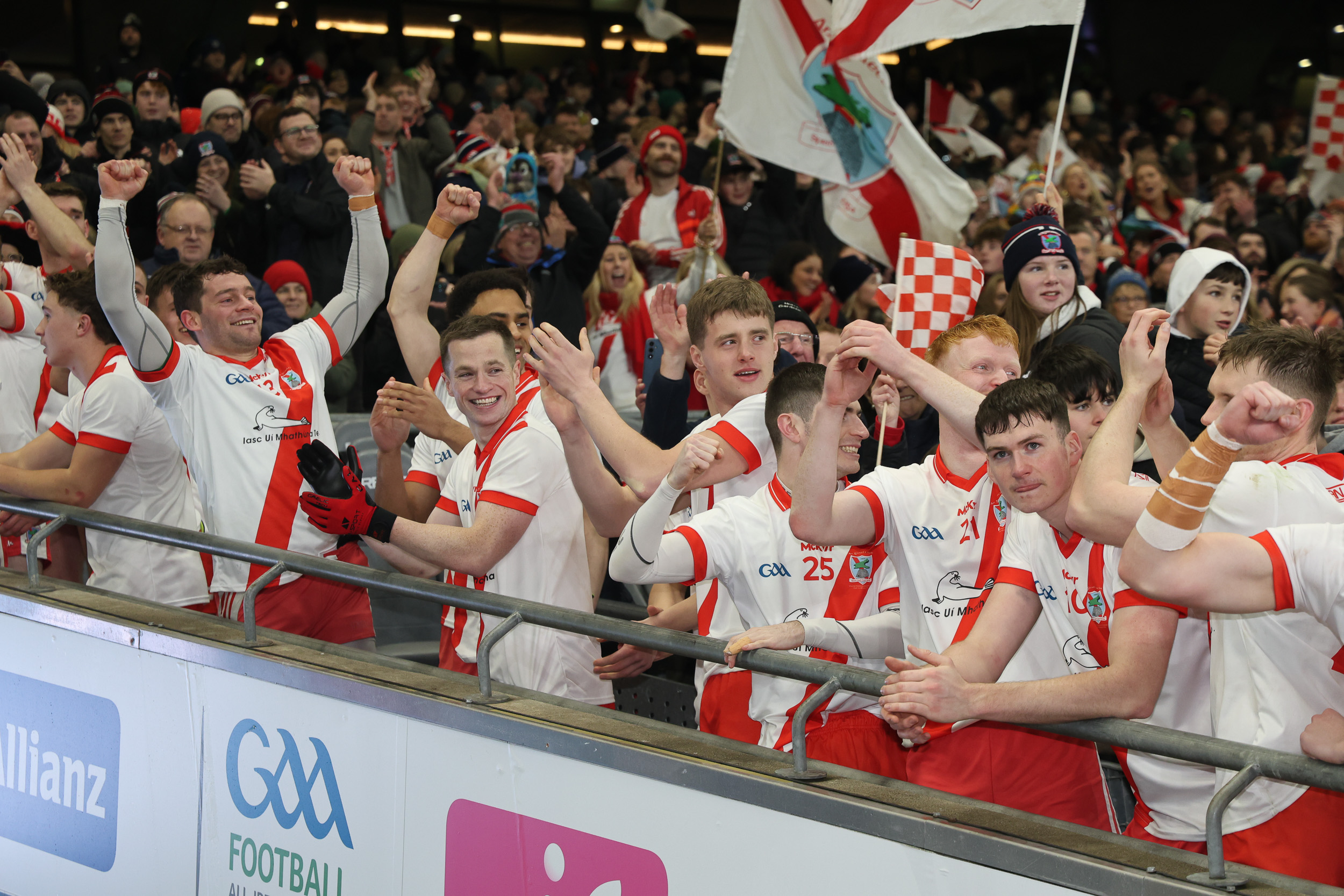 Bhí lá dá saol ag muintir Ghaeltacht Chorca Dhuibhne i bPáirc an Chrócaigh inné nuair a bhuaigh a gcumann caide Craobh Idirmheánach na hÉireann in aghaidh Ghleann an Iolair ó Dhoire. Seo scoth na n-íomhánna ón lá mór chomh maith le físeán speisialta ó sheomra feistis na mbuaiteoirí. Pictiúir: Seán Ó Mainnín/Tuairisc