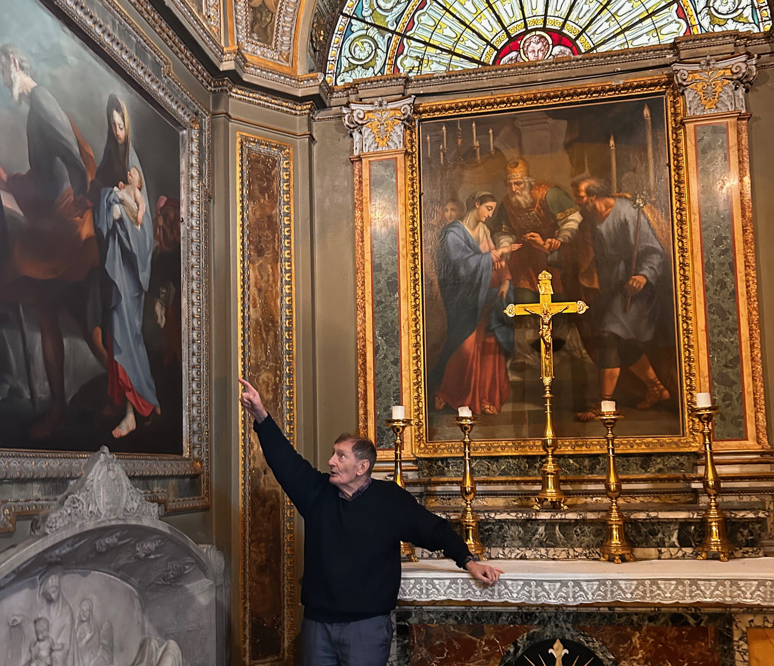 Shíl muidne go mbeadh sé réasúnta éasca an cás a dhéanamh faoi shaothar ealaíne a tógadh as eaglais chomh cáiliúil sin sa Róimh. Ach mhínigh an tAth. Mac Craith dúinne, gur rud amháin é cás a dhéanamh faoi phictiúr a goideadh le linn an Dara Cogadh Domhanda, abair, ach rud eile ar fad cás a dhéanamh faoi ghoid a tharla na céadta bliain ó shin. Fágadh an spás sin folamh ar an altóir le go mbeadh an stair le feiceáil ag an bpobal.